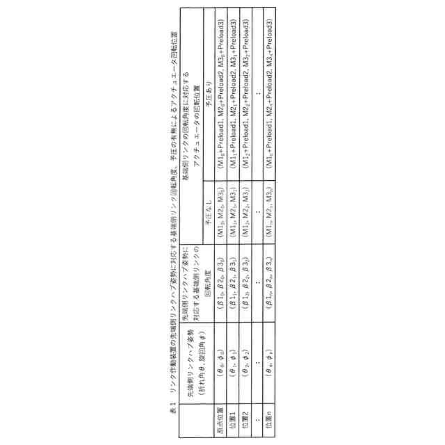 このとき、表1のように、予圧なしの場合の基端側の端部リンク部材15の回転角度に対応するアクチュエータ回転位置(M1