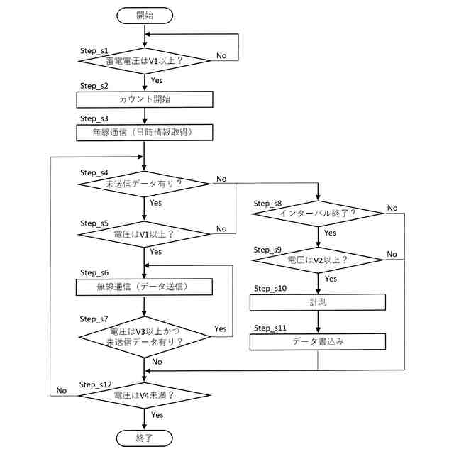 特許文献1では、従来技術として、発電部、蓄電部、データ蓄積部たるセンサ信号記憶回路、制御部、およびデータ通信部たる通信回路を軸受に備えた回転装置が開示されている。この従来技術では、軸受の回転により発電部で発電した電力を蓄電部に蓄え、蓄電部の電圧に応じて、センサで検出したデータの上記記憶回路への書き込みおよび通信回路による外部装置への無線送信の可否を切り替えることで、電力不足による意図しないタイミングでの動作停止等の誤動作を防止するとともに、通信回路等の消費電力を低く抑えている。