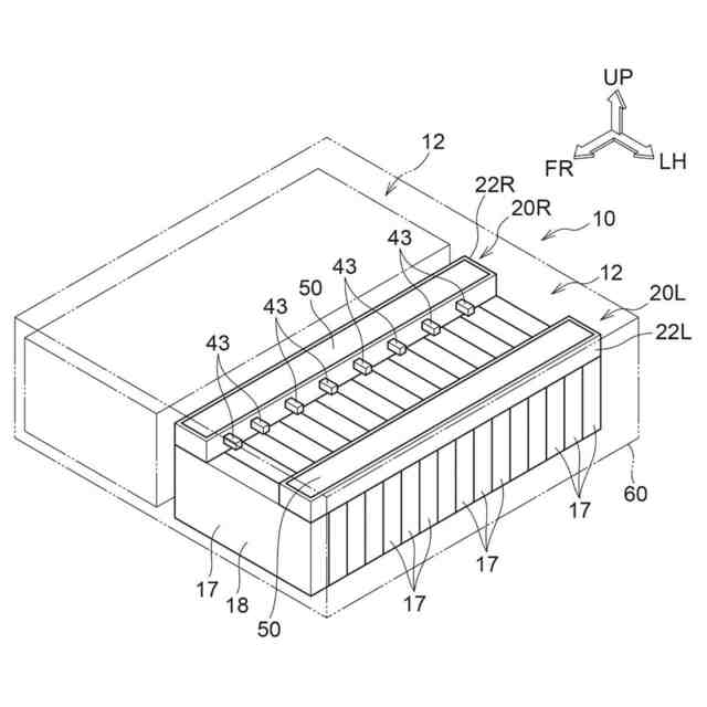 【解決手段】所定方向に積層された複数の電池セル17を有する電池スタック15と、隣り合う2つの電池セルの上面に設けられた端子同士を接続する、この上面の上方に位置し且つ各々導電性を有する複数のバスバー40、45と、複数のバスバーを収納し、隣り合うバスバーの間の隙間を埋める隙間閉鎖部31を備え、且つ絶縁性を有するカバー部材22L、22Rと、電池スタック、バスバー、及びカバー部材を収納する電池ケースと、を備える。