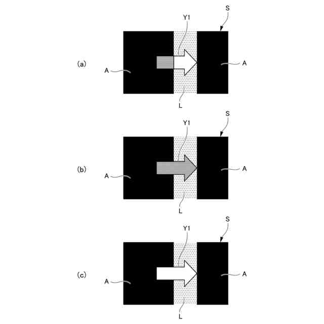 路面に投映したコンテンツを示す図であり、(a)は補正前を示す図、(b)は従来技術による補正後を示す図、(c)は第1実施例による補正後を示す図である。