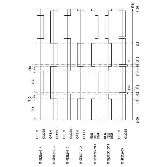 前記第3吸着タンクの容積又は前記第4吸着タンクの容積は、前記第1吸着タンクの容積又は前記第2吸着タンクの容積よりも小さい、
