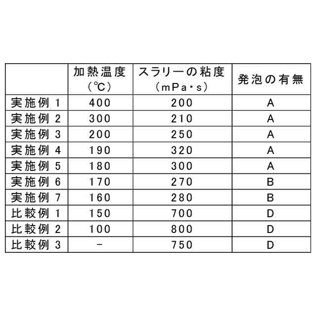 前記第1の工程で加熱された前記鉱物を他の原料及び分散媒と混合してスラリーを得る第2の工程と、