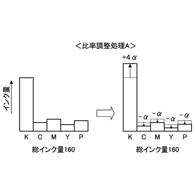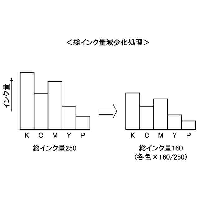 従来、補正後の各インクの出力階調値の組合せにおける合計インク量が上限値を超える場合に、あの大きさに応じて或いは各インクに対して重み付けすることによって、合計インク量を上限値内に減少させる手法が提案されている(例えば、特許文献1参照)。