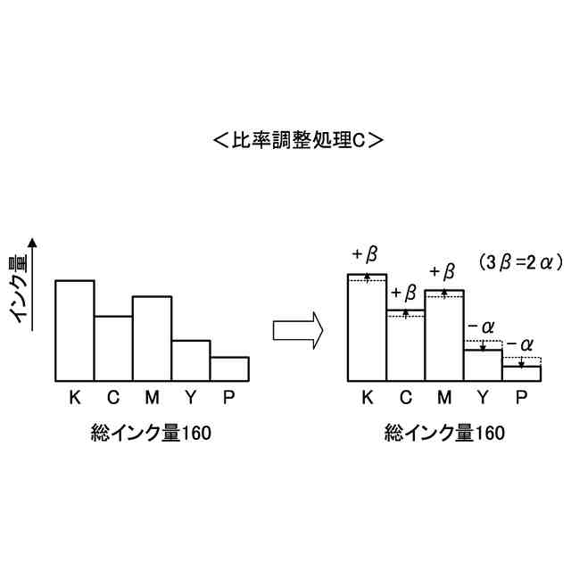 各画素に対応する前記複数のインク色の総インク量が規定量を超える場合に、前記複数のインク色の比率を維持したまま前記総インク量を減少させ、当該減少させた総インク量を維持したまま前記比率を調整することと