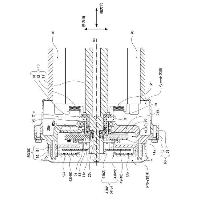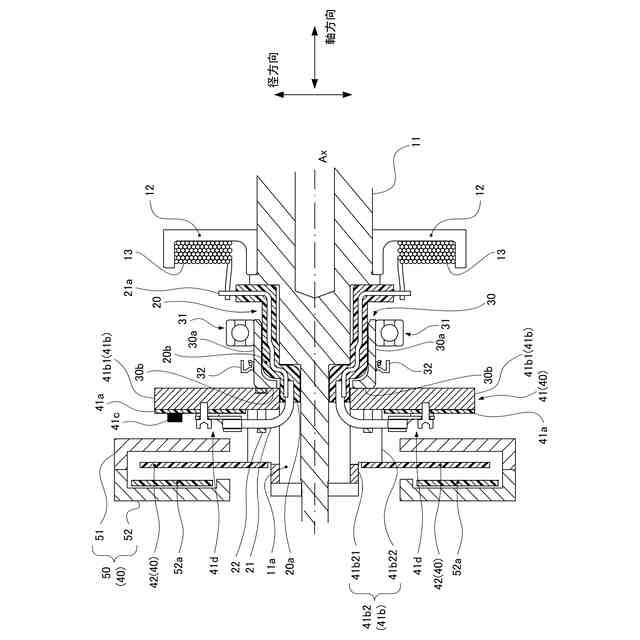 前記基板および前記回転体は、前記被給電部と前記ロータコアとの間に存在する、