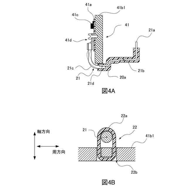 図4Aは導電部材の周辺の部材を抜き出して示す断面図であり、図4Bは規制部が、結束帯で構成された例を示す断面図である。