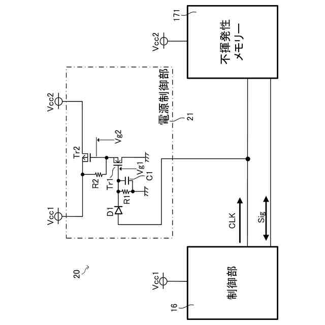 関連技術として、制御部(CPU)が不揮発性メモリーにアクセスしてデータ(プログラム)の読み出し等を行う情報処理装置が知られている(例えば、特許文献1参照)。関連技術の情報処理装置は、不揮発性メモリーに対して電力供給を行う電源部を備えている。ここで、電源部から不揮発性メモリーへの電力供給路にはスイッチが設けられ、パワーマネジメント回路によりスイッチのオン/オフ制御が行われる。