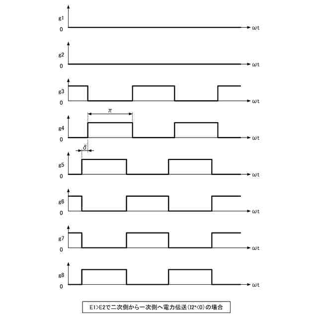 【解決手段】第1レグ11と第2レグ12を有する一次側ブリッジ回路130の直流電圧E1と第3レグ13と第4レグ14を有する二次側ブリッジ回路140の直流電圧E2が相違する条件で、直流電圧の低いブリッジ回路から直流電圧の高いブリッジ回路へ電力を伝送する場合、第1レグから第4レグまでのうち、直流電圧の高いブリッジ回路のいずれか一つのレグの両サイドのアームをオフ状態とし、かつ、残りの各レグの各アームのオン状態とオフ状態を制御する、電力変換装置100。