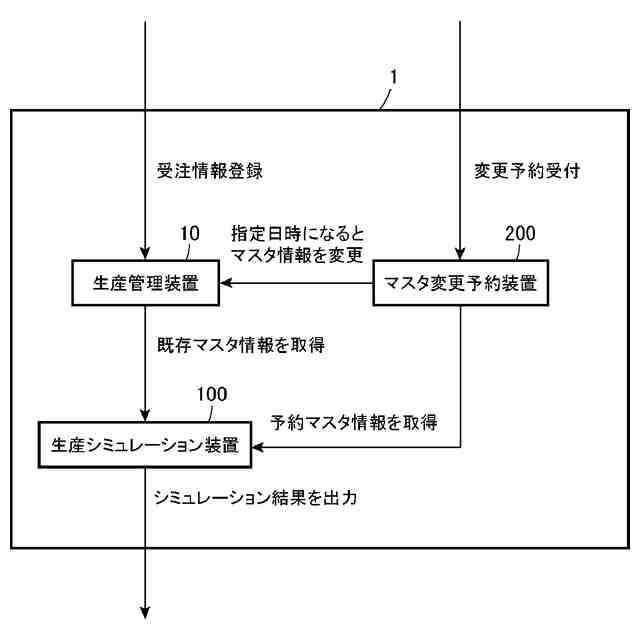 【解決手段】生産管理に使用するマスタを管理する生産管理部と、前記生産管理部から前記マスタに含まれるマスタ情報を取得し、前記マスタ情報に基づいて生産シミュレーションを行う生産シミュレーション部とを備え、前記生産シミュレーション部は、現在の前記マスタに含まれる既存マスタ情報とは異なる予約マスタ情報に基づいて前記生産シミュレーションを実行可能に構成されている。