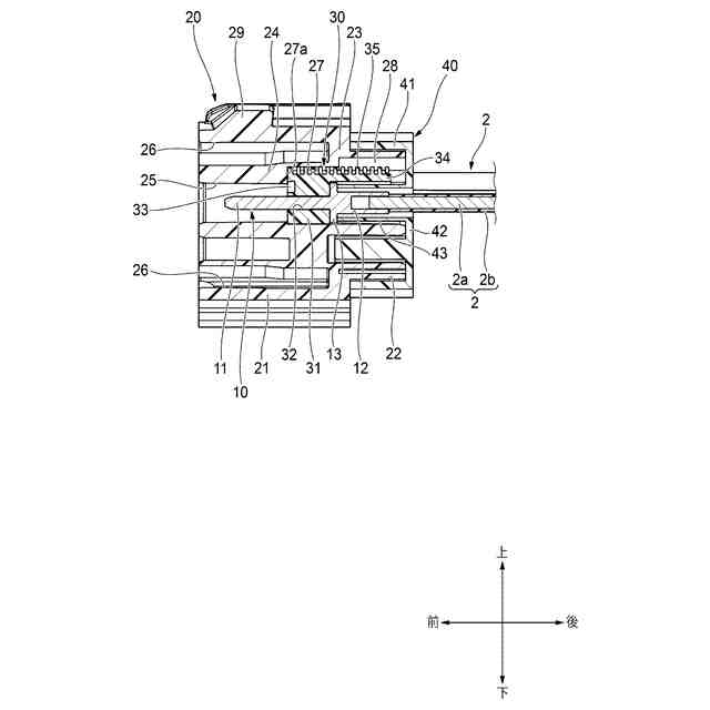 上述した種類のコネクタ(充電インレット)は、一般に、各種の規格で定められた構造や特性を有することが求められる。例えば、上述したコネクタを実際に使用する際、通電時に端子に生じるジュール熱に起因し、端子の温度(いわゆる動作温度)が上昇する。ここで、コネクタの品質保持や安全性等の観点から、端子の動作温度の上限値等が、所定の規格で定められている。特に、バッテリの急速充電を行う場合等には、大電流が短時間にコネクタを通過するため、単位時間あたりの端子の温度上昇の度合いが、通常充電を行う場合に比べて高まる。そのため、自然放熱のみによっては、急速充電中の端子の動作温度を上記規格で定められている範囲内に収めることが困難となる可能性がある。換言すると、動作温度の観点からコネクタの通電電流の大きさが制限されることが、バッテリの充電時間の短縮の妨げとなっている。一方、放熱用の部材(例えば、金属板等)をコネクタの外部に安易に組み付けることは、コネクタの大型化の原因となり得る点や、車体内でのコネクタの設置スペースが限られている点などから、望ましくない。