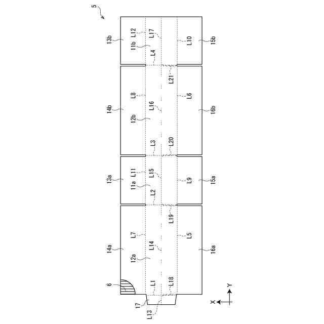前記少なくとも一方の第1の側壁には前記第1の側壁を横断する折曲予定線(L17)が設けられ、
