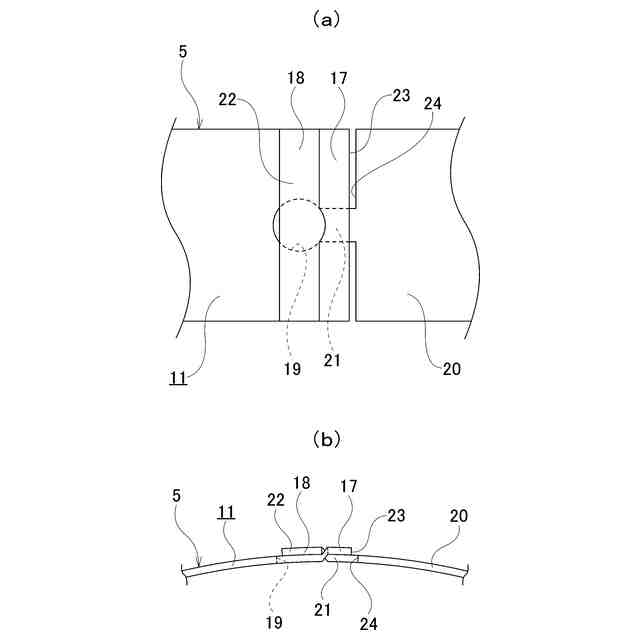 特開2022-74405号公報に記載の従来の磁歪式トルクセンサは、母材に打ち抜き加工を施すことで、帯状または矩形板状の本体部を有するフレキシブル基板を得た後、該本体部をホルダのボビン部に巻き付けて円筒状または欠円筒状に成形することで得られる。