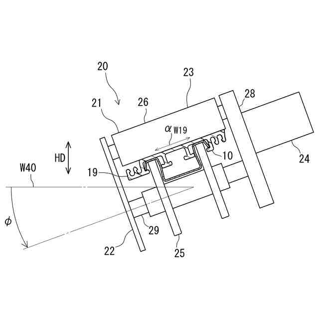 好ましくは、前記アーム伸び方向から見て、前記ローラ軸が、前記アーム幅方向に対して傾けられている。