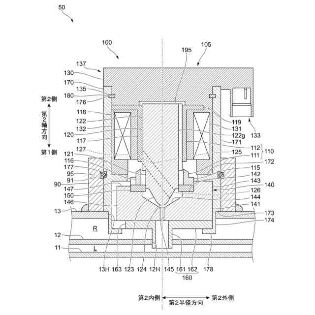 第2実施形態に係る電磁弁の断面の一例を示す図である。