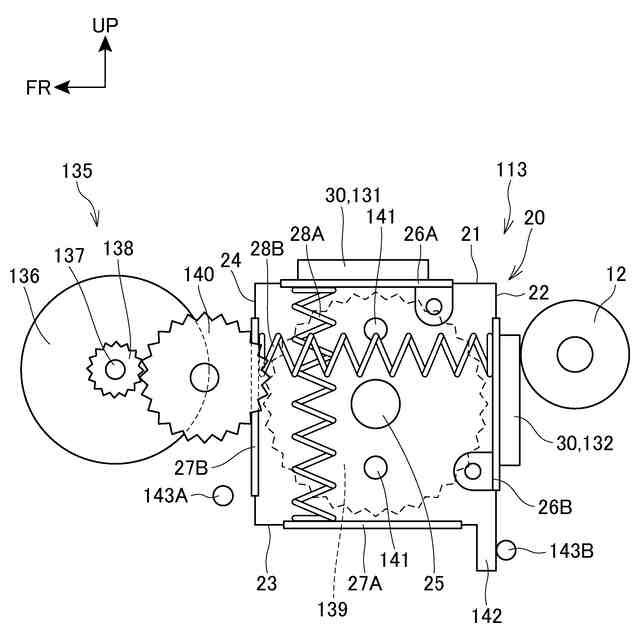 プラテン12は、例えば、ゴム等の弾性部材により筒状に形成される。プラテン12には、プラテン12を回転させる動力部(図示無し)が接続される。プラテン12は、プリンターカバー11を閉じている際は、後述するヘッド保持部材13と共にロール紙16を挟んで保持する。サーマルプリンター1は、プリンターカバー11を開くことで、開口を形成し、ロール紙16の交換が可能となる。