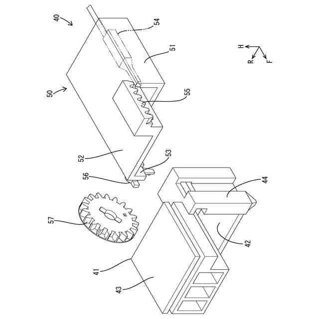 前記第1ハウジングと前記第2ハウジングの少なくとも一方に形成されたラックと、