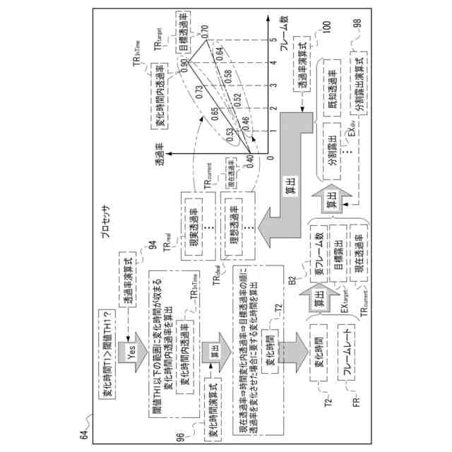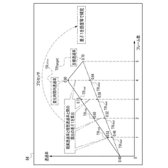 前記複数の分割露出のうちの前記第1透過率から前記第2透過率へ変化する過程の前記分割露出は、前記複数の理想透過率と、前記変化時間が前記第1閾値以下で前記第1透過率から複数の中間透過率を経て前記第2透過率へ変化する過程を定めた複数の第2現実透過率とに基づいて調整され、