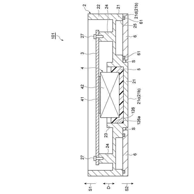 (2)上記の(1)において、水路用溝の少なくとも一部は、対向方向から見た場合に貫通孔を囲んでいる。このような構成では、水路用溝の少なくとも一部が貫通孔を囲んでいることにより、貫通孔に配置された放熱材と水路用溝を流れる冷媒との熱交換が効果的に行われる。
