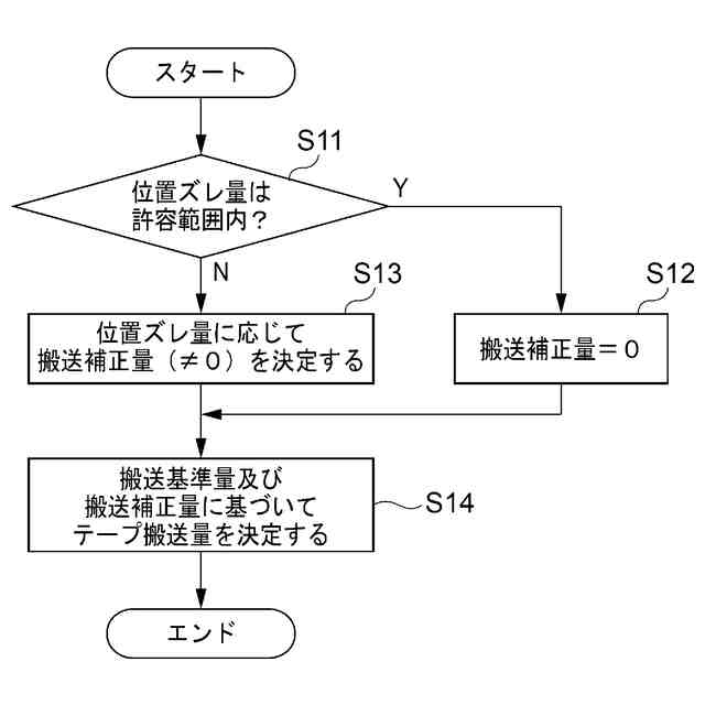 前記位置ずれ量が前記許容範囲を超える場合、前記搬送補正量の値はゼロ以外の値である、