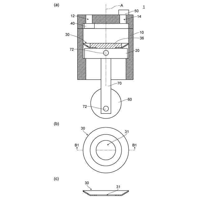 上記のような構成を有する往復ポンプ自体は以前から広く知られているが、近年における技術の進展により往復ポンプ及びその付帯装置の小型化及び高性能化が進み、一層多様な分野で用いられるようになってきている。例えば、圧縮装置としての往復ポンプは、タイヤ用空気入れ、空気スプレー、酸素濃縮器、人工呼吸器、車載用コンプレッサー、電気自動車(EV)の熱マネジメントシステム(特に、空調、バッテリー、駆動制御回路等に関連する、熱交換技術による温度制御に関するもの)等の一部として、又は、これらに接続して用いられている。