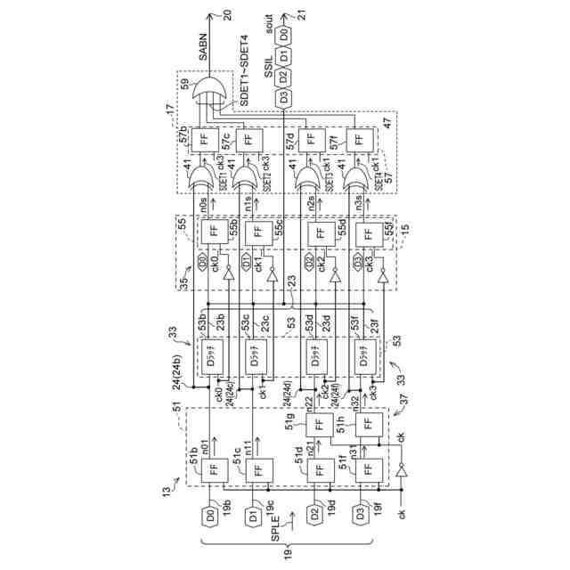 半導体装置間のデータ伝送、例えば映像データ転送には、高速シリアルインタフェースが使用される。高速シリアルインタフェースは、パラレルデータフォーマットをシリアルデータフォーマットに変換するパラレルシリアル変換回路を含む。このシリアルインタフェースの送信回路は、パラレルシリアル変換回路からのシリアルデータを受ける。送信回路は、パラレルシリアル変換回路からのシリアルデータを高速の転送クロックに同期して送信する。送信データは、受信回路によって転送クロックに同期して受信される。受信回路は、シリアルデータ転送における転送クロックの異常を検知できる一方で、しかしながら、受信したシリアルデータの値の異常を検知できない。