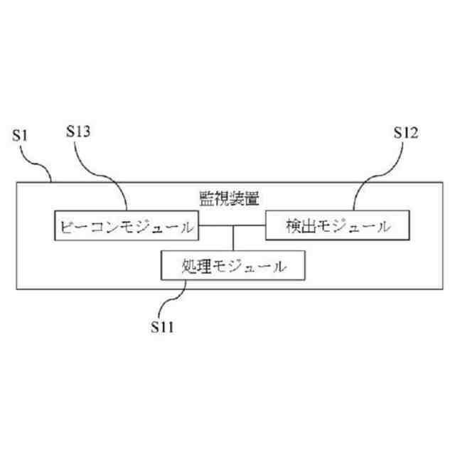 前記処理モジュールは、前記検出動作を表すシリアル番号、グループ識別子、監視識別子及びランダムコードに基づいてチェック値を生成し、前記シリアル番号、前記グループ識別子、前記監視識別子及び前記チェック値を含むビーコン信号を生成し、前記照明装置を前記ビーコン信号に従って動作させることを特徴とする監視装置。