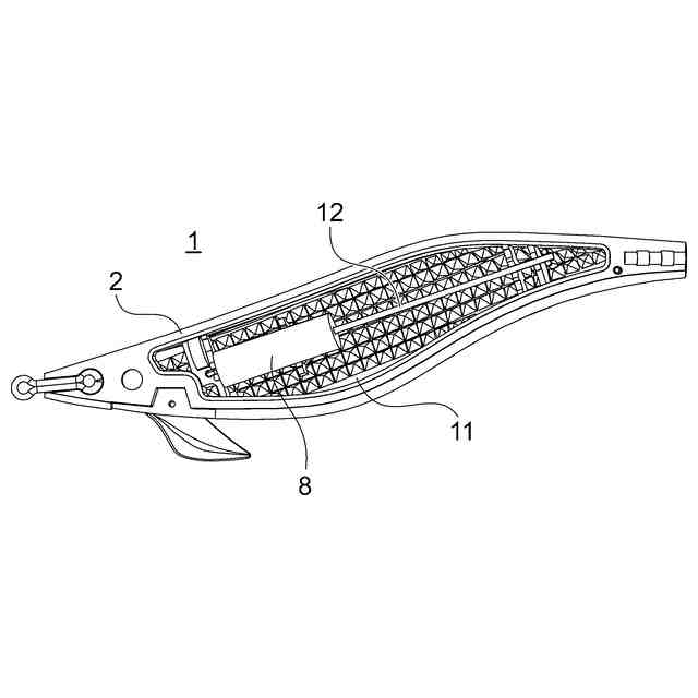 しかしながら、特許文献1のような漁誘引具では、光の反射をもたらし得るものの、反射光が弱くなってしまうか、小片に当たる外部からの光の角度によっては、反射光がそもそもフィッシュイーターに届かないため、魚の誘引効果が必ずしも高くならないのみならず、ルアー内部にその他の機構(例えば、重心移動システム)を設けるスペースが確保できないという問題があった。