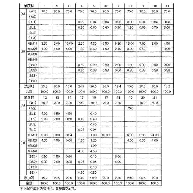 上記被覆材中に、上記鱗片状粒子(B)を4~20質量%含み、