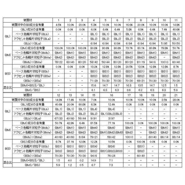 上記中粒子(BM)は、ベース色鱗片状中粒子(BM
