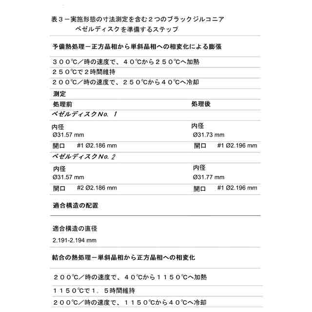 【解決手段】少なくとも1つの開口10を含む接続部分を含む、第一時計部品1と、第一時計部品1とは別個の、少なくとも1つの適合構造20を含む、少なくとも1つの第二時計部品2とを含む、時計組立体3の製造方法であって、第一時計部品1の接続部分及びまたは第二時計部品2の適合構造は、焼結ジルコニアに基づくパーツを形成し、方法は、結合の熱処理ステップを含み、熱処理は、焼結ジルコニアに基づくパーツの、正方晶相から単斜晶相への、またはその逆の、相変化を引き起こすよう予め定義され、相変化は、第一時計部品1の接続部分と、第二時計部品2の適合構造とを結合するよう、少なくとも焼結ジルコニアに基づくパーツの寸法の変化を引き起こす、時計組立体の製造方法。
