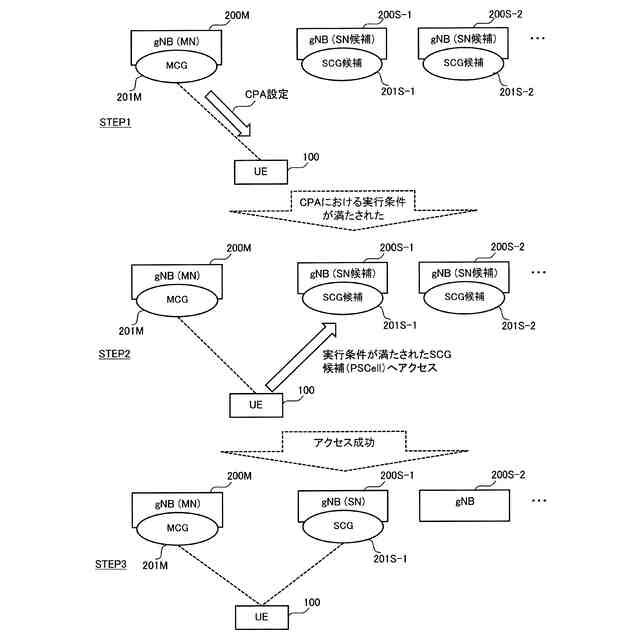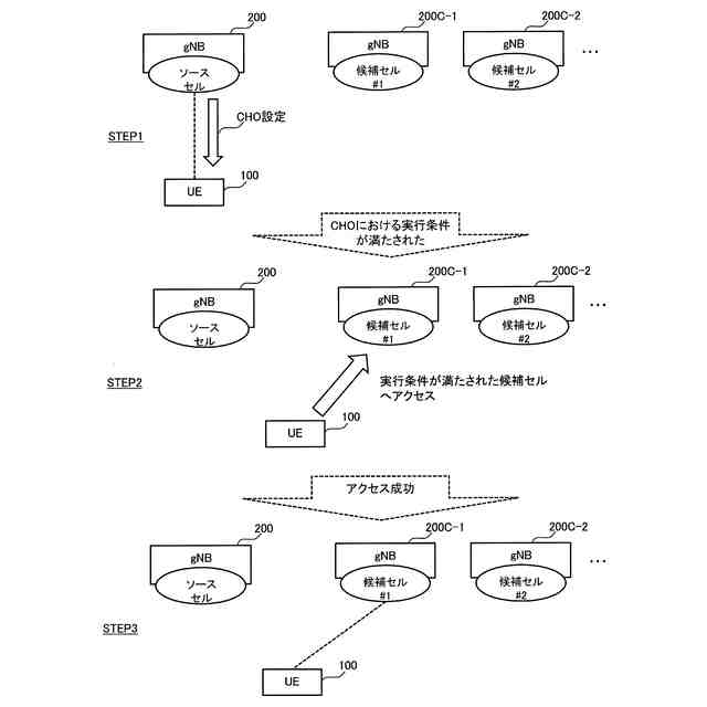 移動通信システムの標準化プロジェクトである3GPP(Third Generation Partnership Project)の技術仕様において、条件付きハンドオーバ(CHO:Conditional Handover)及び条件付きプライマリ・セカンダリセル変更(CPC:Conditional PSCell Change)の仕様が策定されている。また、3GPPにおいて、条件付きプライマリ・セカンダリセル追加(CPA:Conditional PSCell Addition)及びセカンダリノード間(Inter-SN)CPCの仕様策定について議論されている。なお、CPC及びCPAはCPACと総称されることがある。