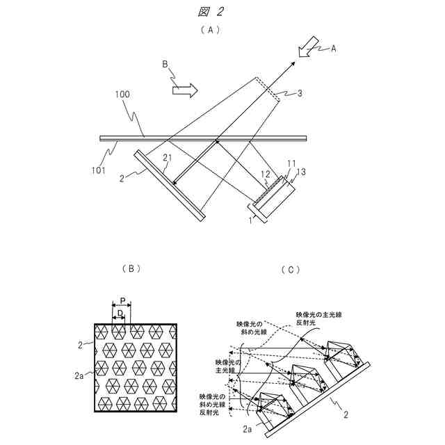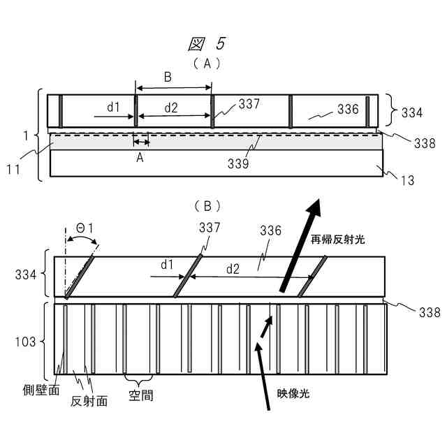 本発明の一実施例に係る空間浮遊映像情報表示システムの主要部構成と再帰反射部構成の他の例を示す図である。