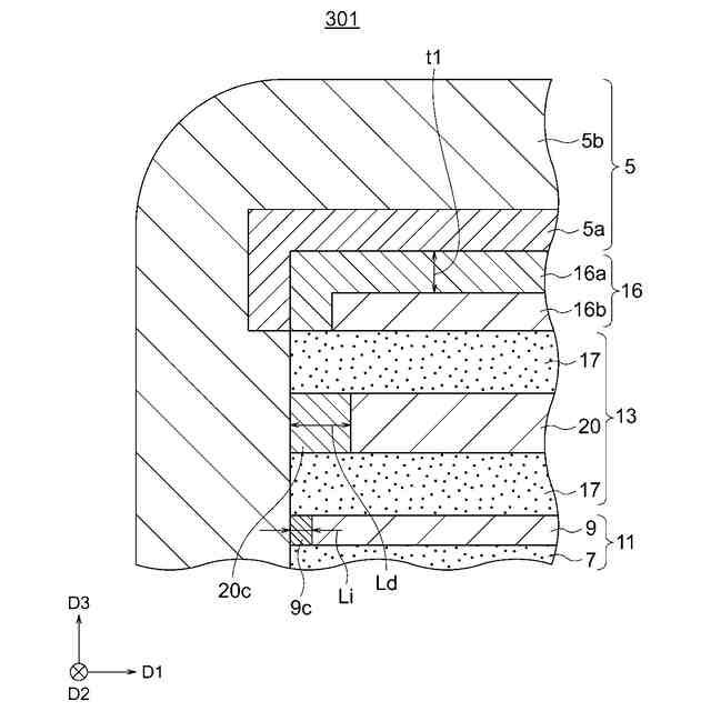 前記第2縁部は、前記下地電極の厚み全体に前記下地拡散層を有する