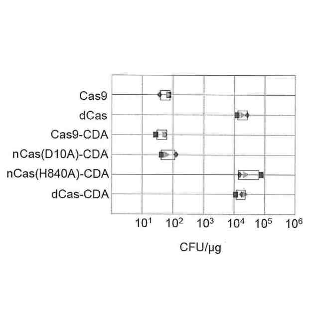 座でヌクレオチドを直接編集する、デアミナーゼに媒介される標的塩基編集が実証されている(例えば、特許文献1、非特許文献10~12)。この技術は、ヌクレアーゼに媒介されるDNA切断の代わりに、DNA脱アミノ化を利用するため、細菌の細胞死を誘導せず、細菌のゲノム編集に適用可能であるが、その変異効率、特に複数箇所に対する同時編集の効率は、十分とはいえない。