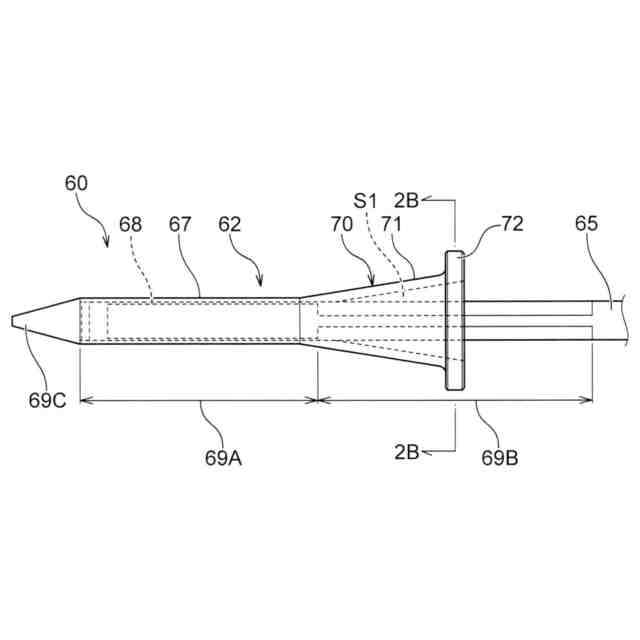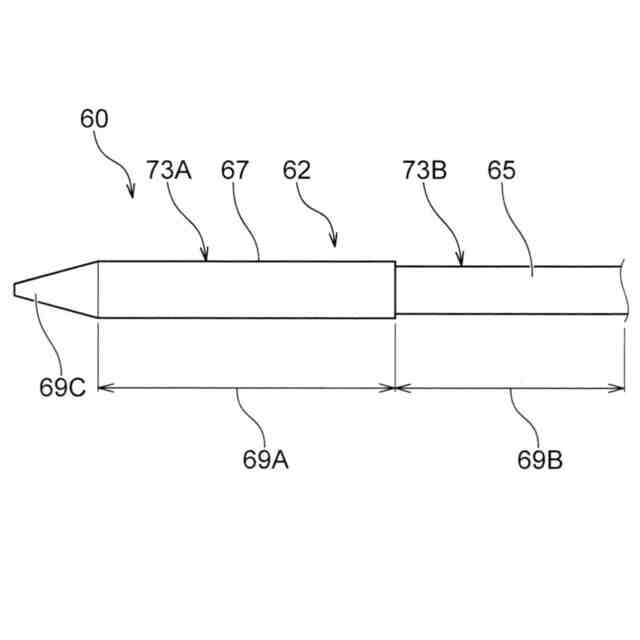 前記第1部分は、前記第2部分よりも前記ヒータの先端側に位置し、