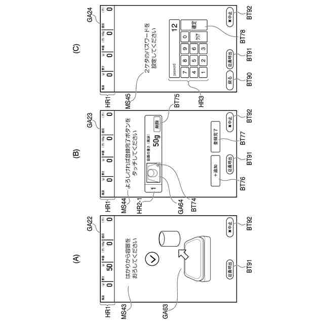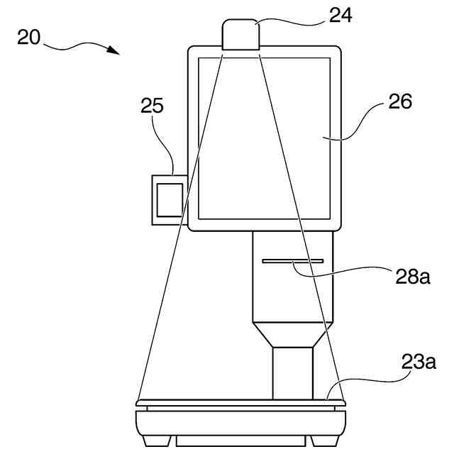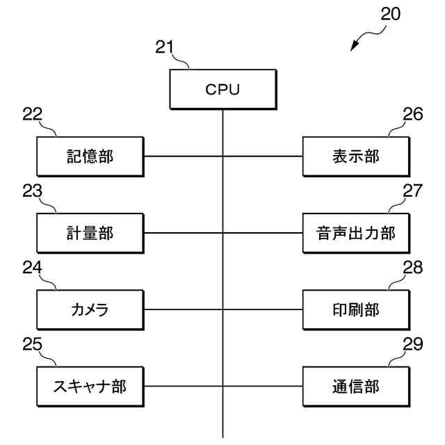 図1は、本発明の実施形態に係る計量装置20の外観の一例を示す説明図である。計量装置20は、計量して販売する計量販売商品(「バラ売り商品」、「計量値付け商品」と称する場合がある)を販売する店舗(スーパーマーケット、コンビニエンスストア、ドラッグストア、ホームセンタ、家電量販店等)に設置される。計量販売商品は、例えば、ナッツ、チョコレート、ドライフルーツ、調味料、酒類等の食品であるが、製品や材料等であってもよい。なお、図1の各符号については後述する(図2とともに参照する)。
