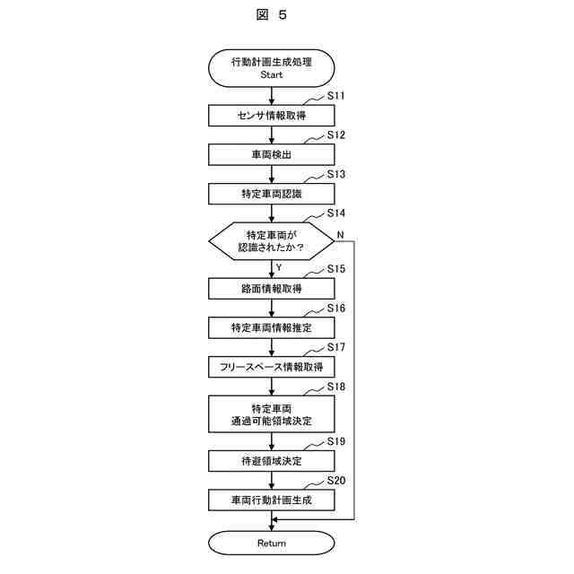 また、同文献の明細書と図面では、カメラ(上記の第1の方法に相当)またはマイク(上記の第2の方法に相当)を使用して緊急車両を認識したかを判定し(明細書の段落0027~0030、および、図3のS3~S6など)、緊急車両が認識された場合は、走行制御を中断して待避制御に移行する(明細書の段落0035、図3のS9など)と説明されている。