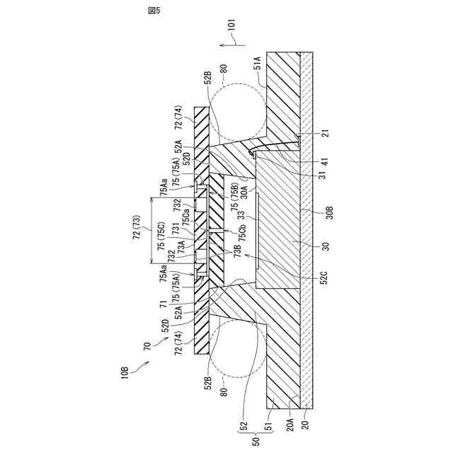 圧力センサ装置10は、圧力を検出する素子である。図1及び図2に示すように、圧力センサ装置10は、ベース基板20と、ベース基板20の上面20Aに実装され、圧力を検出する検出素子30と、ベース基板20の上面20Aに設けられ、検出素子30の一部を覆う樹脂パッケージ50とを備える。