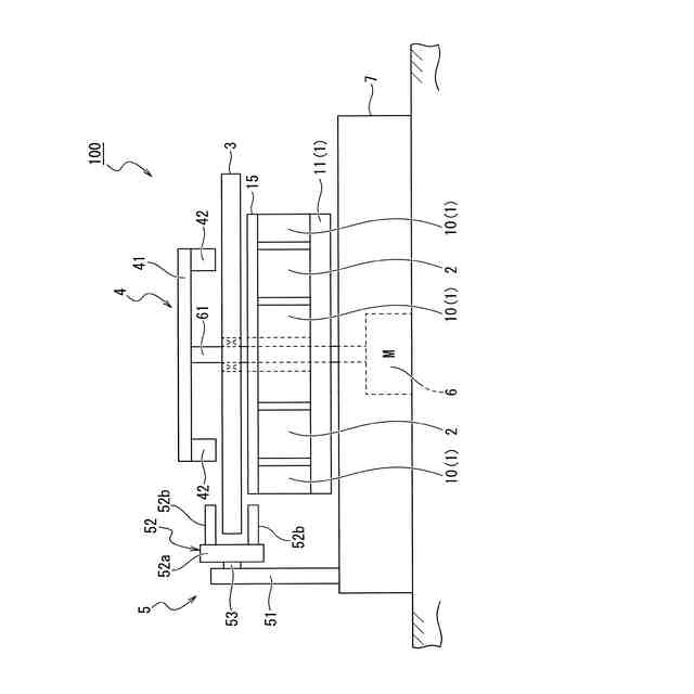 前記容器は、前記回転装置の回転軸である第一の回転軸に固定された回転板上に形成された複数の凹部と、前記凹部の上面を塞ぐ蓋と、を備え、