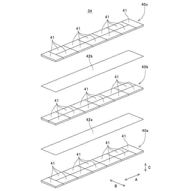 【解決手段】受電用コイル33、および受電用コイル33に挿通させられた長尺のコア34を備え、コア34は、短辺の長さと長辺の長さとの比が1対N(Nは、2以上の自然数)の矩形状の複数の磁性体片41,41・・を備え、少なくともコア34の長尺方向において複数の磁性体片41,41・・が並んだ状態で互いに位置決めされて構成されている。また、コア34は、短辺の長さと長辺の長さとの比が1対N(Nは、2以上の自然数)の矩形状に形成されている。