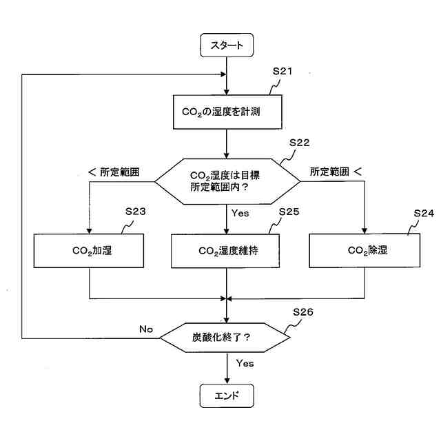 当該計測工程で計測された二酸化炭素濃度により、前記供給工程で供給される二酸化炭素ガスにおける二酸化炭素濃度を制御する(例えば0.5%~80%の適正範囲に維持する)工程を有することを特徴としている。