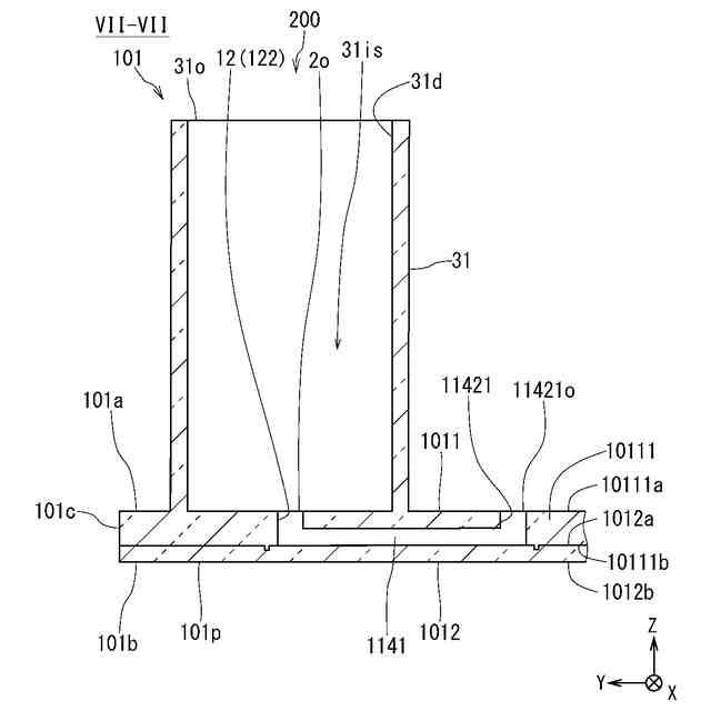 図7は、図4の位置VII-VIIにおいて第1部分を+X方向に向かって見た仮想的な断面の一例を模式的に示す断面図である。