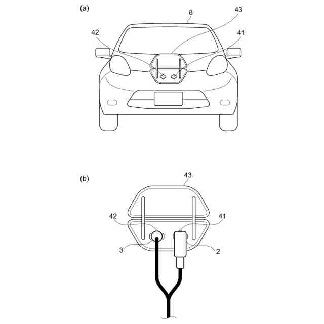 図2(a)は、電気自動車の充電口の一例を示す図である。図2(b)は、電気自動車の充電口に第1コネクタおよび第2コネクタを接続した状態を示す図である。