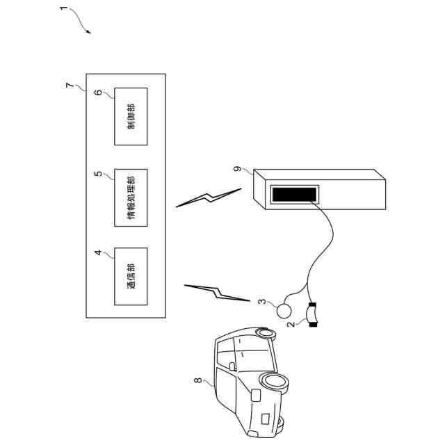 図1は、給電システム1を含む第1の実施形態の一例を示す図である。給電システム1は、充電器9と、情報処理装置7とを含んで構成される。充電器9は、電気自動車8への給電に用いる装置である。電気自動車8への給電に用いる充電器としては、普通充電器と急速充電器がある。普通充電は、交流電源から受電した交流電圧をそのまま車両に供給する充電方式である。急速充電は、交流電源から受電した交流電圧を直流電圧に変換して車両に供給する充電方式である。本実施形態の充電器9は、普通充電器である。