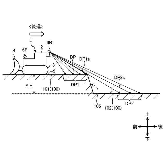 作業機械は、作業現場を走行する。作業現場に崖のような大きい段差がある可能性がある。段差が作業機械のオペレータの死角に入ると、オペレータは段差を認識することが困難となる。また、作業現場の地面の状況によっては、オペレータは段差を認識することが困難となる可能性がある。作業現場の地面は土砂である場合が多い。作業現場の地面が土砂である場合、オペレータは作業現場の段差を視認し難くなる可能性がある。また、作業現場の地面に凹凸がある可能性が高い。作業現場の地面に凹凸がある場合、オペレータは作業現場の段差を視認し難くなる可能性がある。