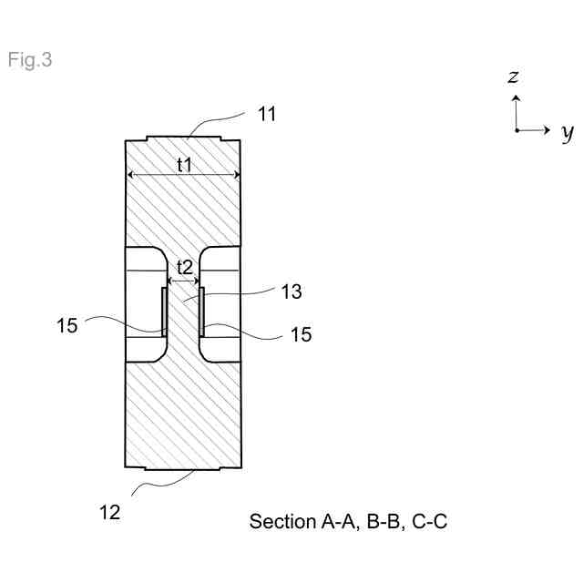 本発明の第1、第2、第3の実施形態に係るロードセルの断面図である。