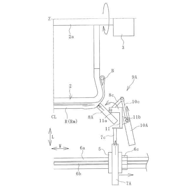 本発明によれば、それぞれの前記電動シリンダの前記ロッドの進退によって、それぞれの前記旋回軸を中心にして、支持されているそれぞれの前記押圧ローラを旋回させるので、それぞれの前記押圧ローラをより小さなスペースで旋回させることができる。これに伴い、それぞれの前記押圧ローラの旋回動作に必要な構成をコンパクトにするには有利になる。この構成により、それぞれの前記押圧ローラをレスポンスよく旋回させるにも有利になる。
