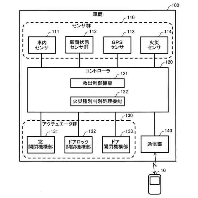 前記車両内で火災が発生したことを検出する火災センサをさらに備え、