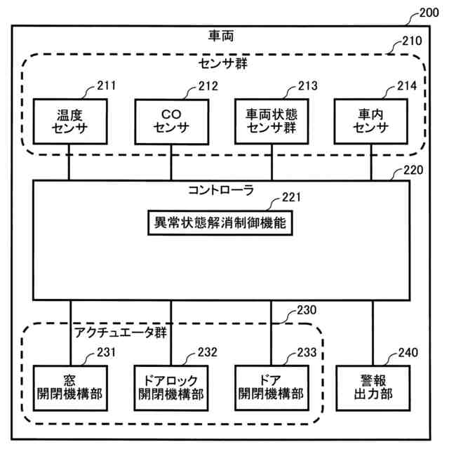 また、車両内で発生しうる異常状態は、人が取り残される状況以外にも、車両内における温度異常の発生、CO濃度異常の発生なども考えられる。