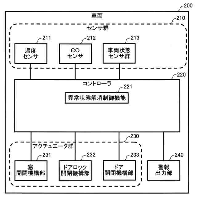 また、車内異常が発生していることを警報により知った車外にいる人は、ウィンドウを壊すなどの行為により、車内に取り残された人を救出することは可能である。しかしながら、このような行為は、車両の破損を招くとともに、ウィンドウを壊したことにより2次災害が発生してしまうおそれもある。